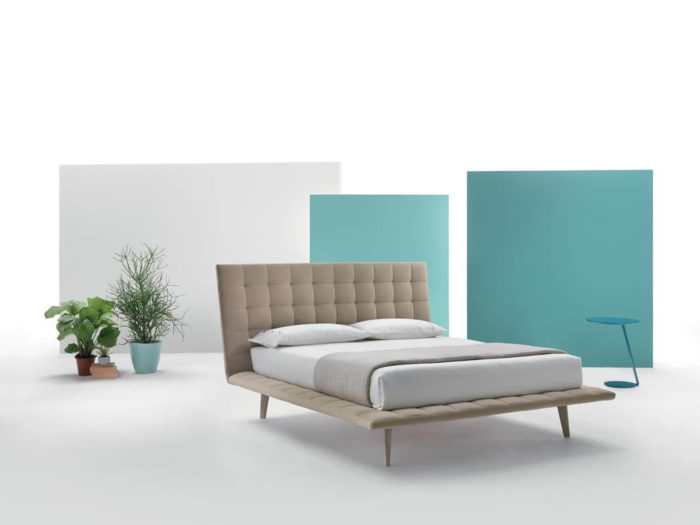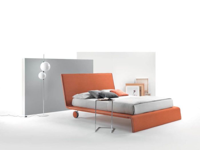 Letto disponibile per materasso L 160/180, nelle versioni Mila Trapuntato, Mila Light e Mila Light Trapuntato. Opzionali piedino rivestito in tessuto e ruota.
