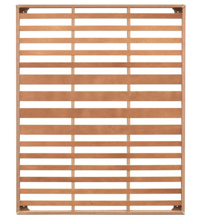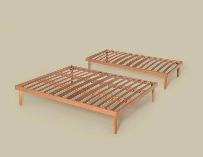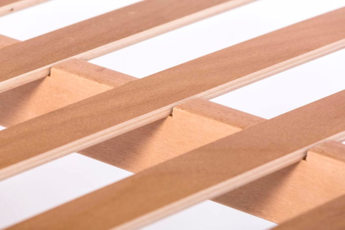 Il piano di riposo risulta ancora più robusto e indistruttibile grazie alla combinazione di doghe di differenti misure e quindi capacità di portata. In particolare sono doghe da 100 mm nelle zone di maggiore portata, da 55 mm nel resto della rete.