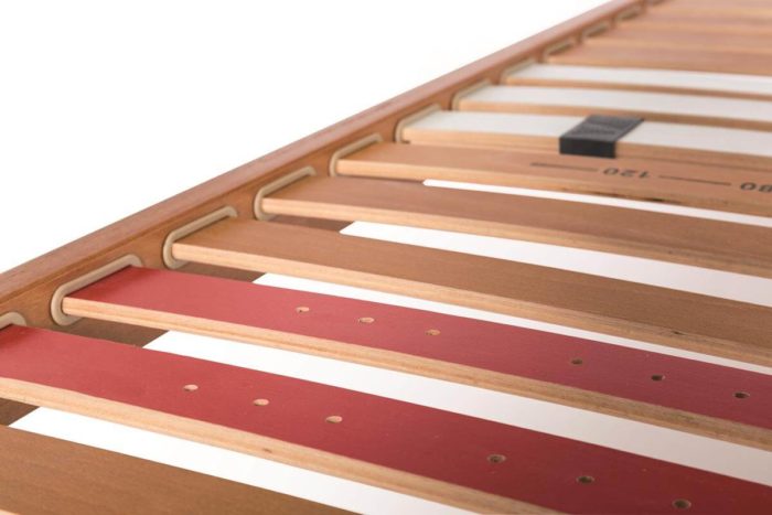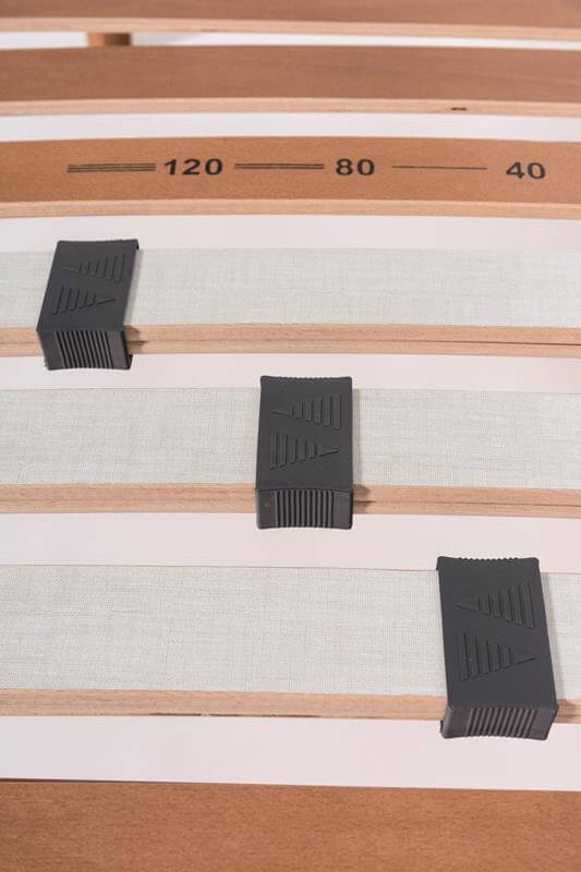 Le doghe nella zona delle spalle sono progettate con lavorazione a foratura per renderle più flessibili e offrire un supporto idoneo. I cursori ad anello svolgono consentono di regolare la portata della zona del bacino e bilanciare a piacimento il supporto ergonomico della rete.