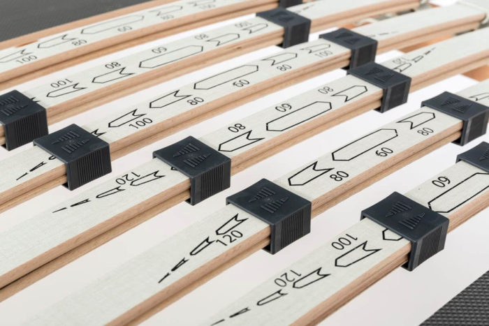 Realizzato in SEBS, un materiale resistente e indistruttibile, il giunto Tecnoflex svolge la funzione di assecondare la naturale postura della colonna vertebrale in tutte le diverse posizioni assunte dal corpo durante il riposo.