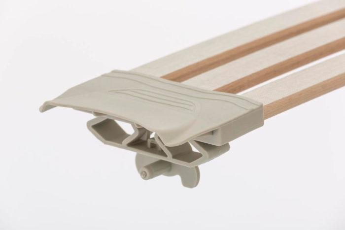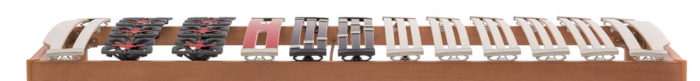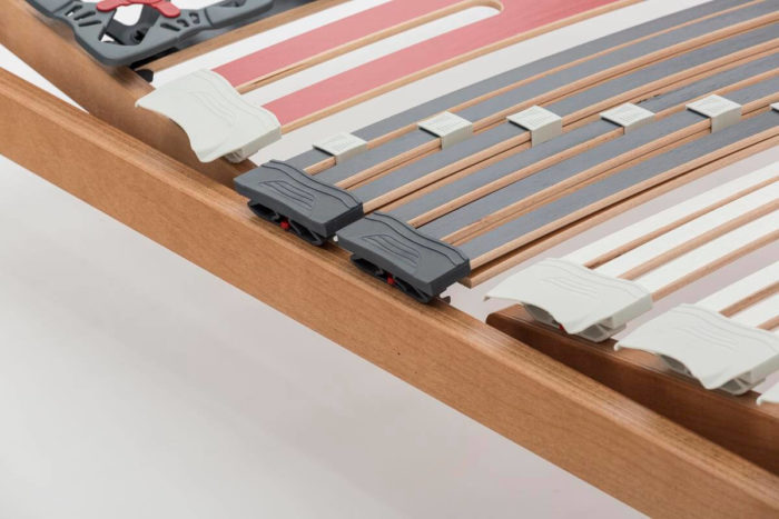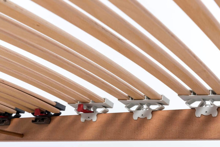 Il piano di riposo dotato di speciali doghe da 25 mm di larghezza, particolarmente flessibili, seguono in maniera ergonomica le forme del corpo, conformandosi puntualmente alle diverse posizioni assunte durante il riposo.